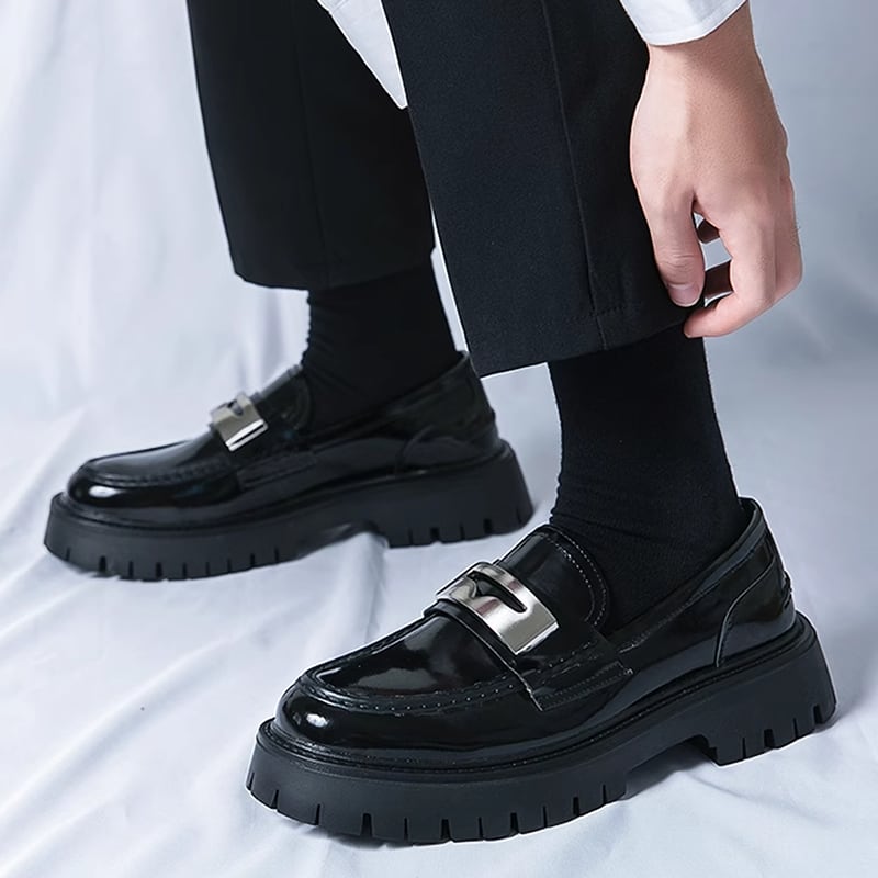 チャンキーソールメタルプレートローファー LB1343
