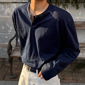 ヘンリーネックコットンロングスリーブTシャツ LB1477