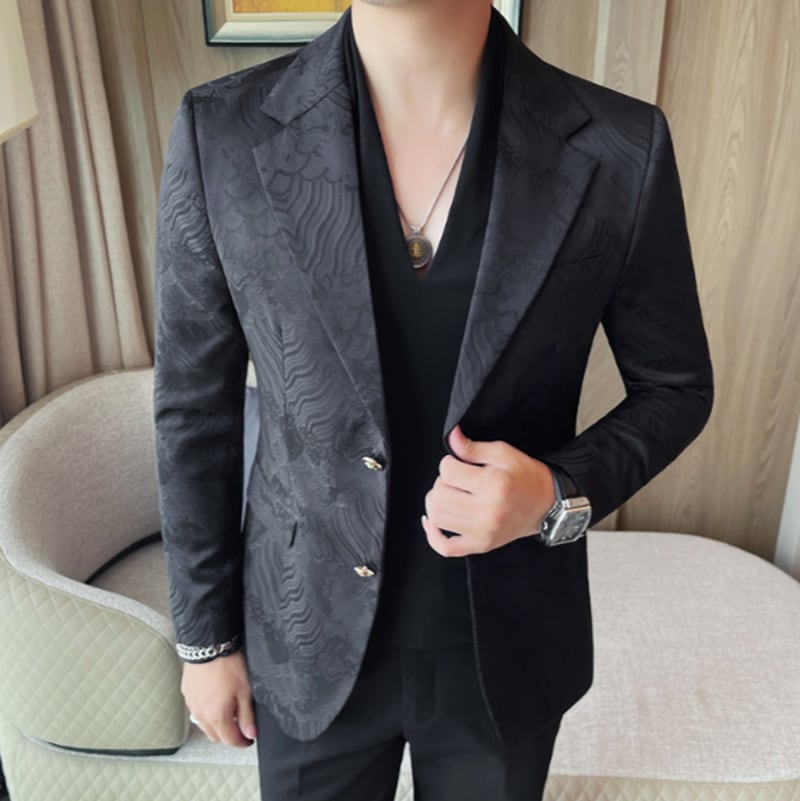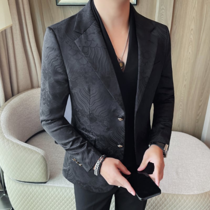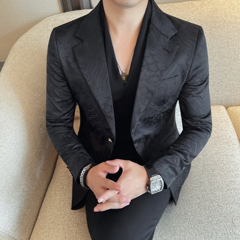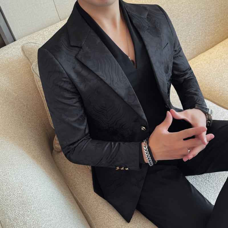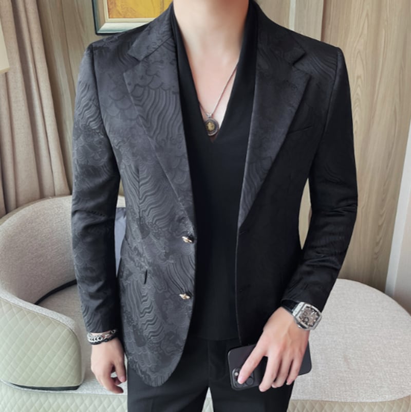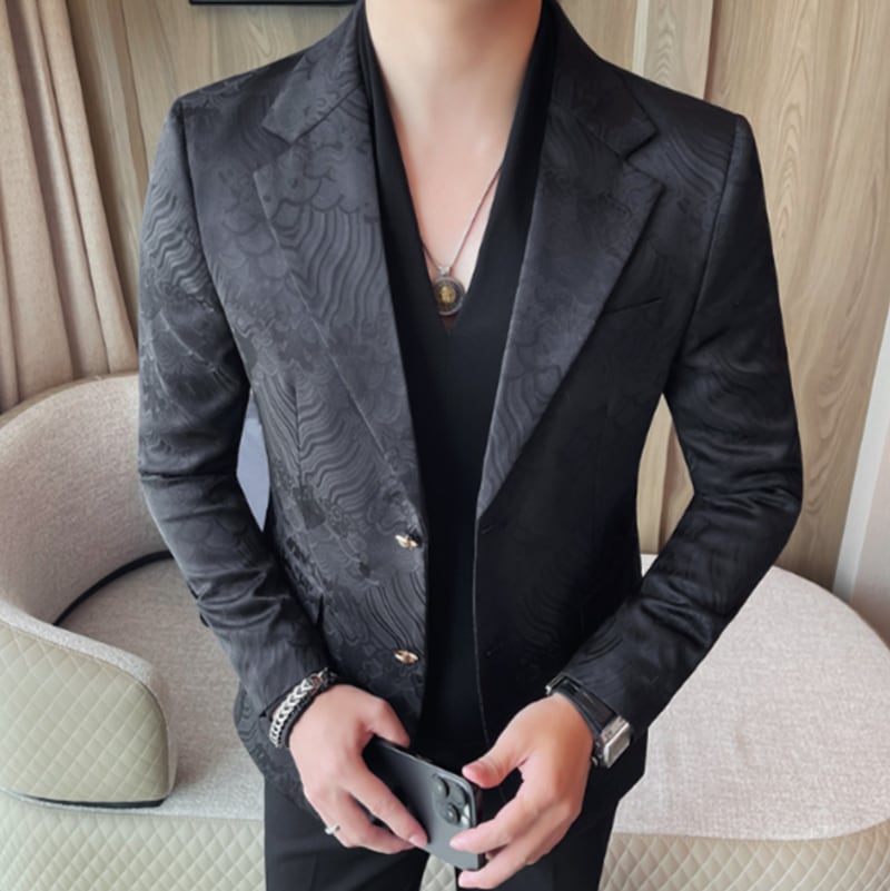 ジャガードパターン テーラードジャケット ブラック LB1495