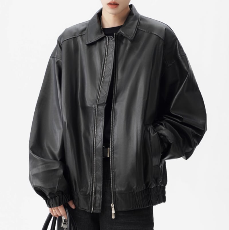 フェイクレザー ミニマルジップブルゾン 2カラー LB1569