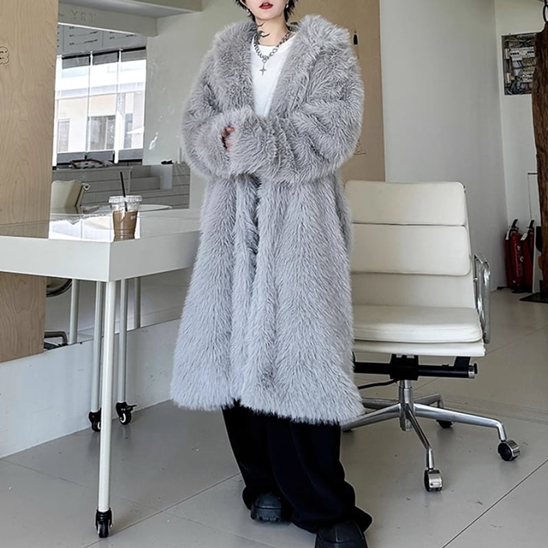 ロングファー フーデッドコート 2カラー LB1586