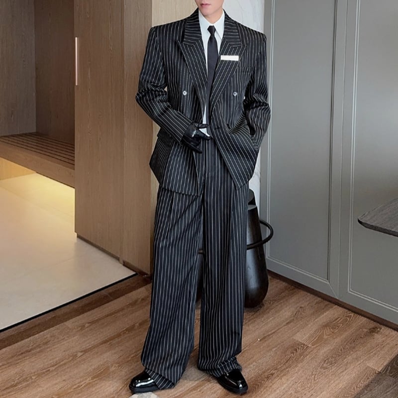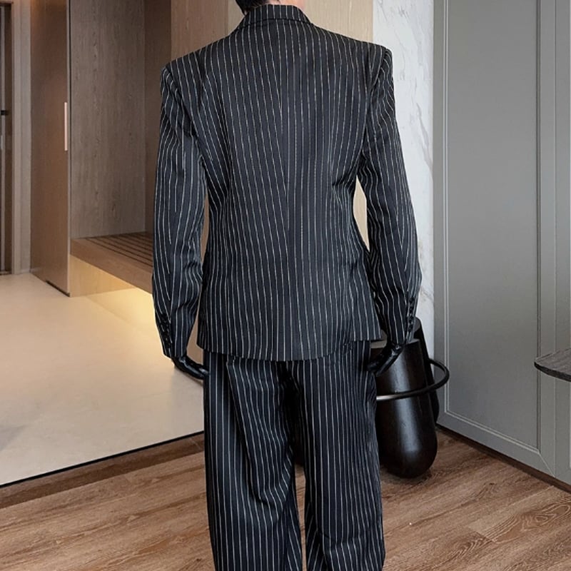 メタルプレートラペル ピンストライプ モードセットアップ LB1592