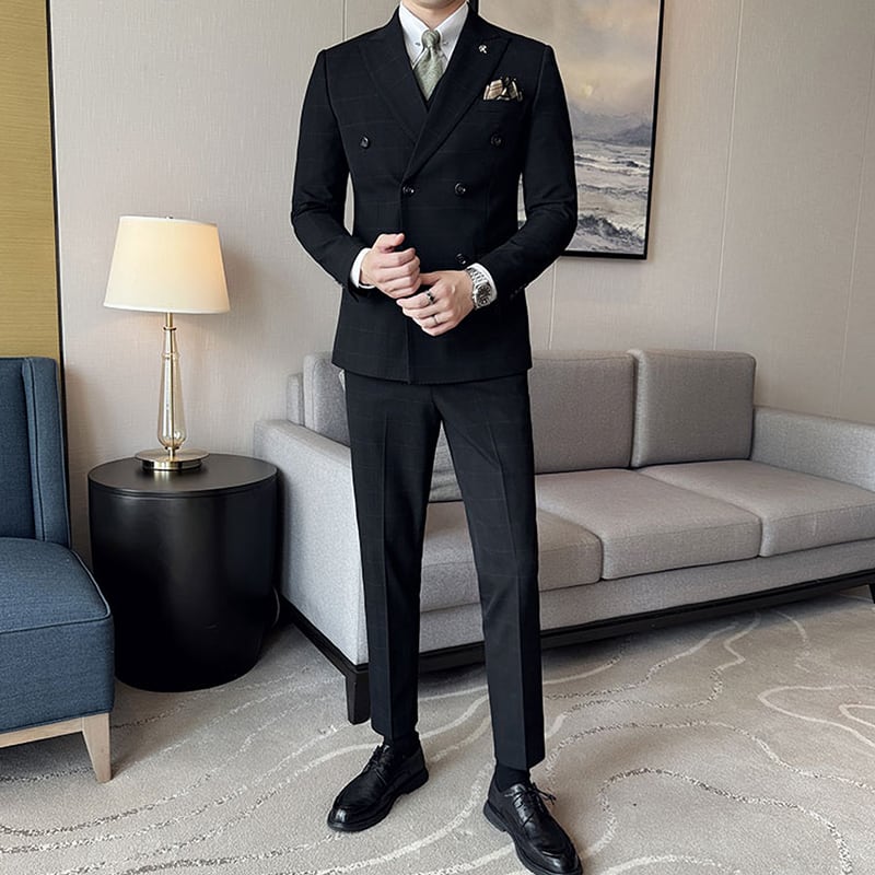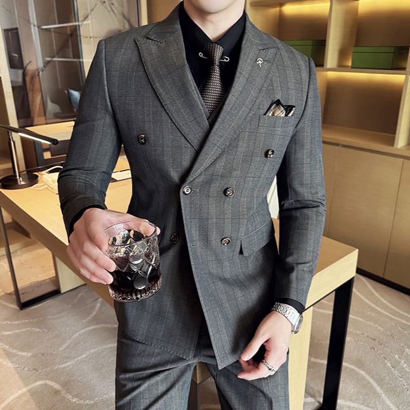 スリーピース ラグジュアリーウィンドペン ダブルブレストスーツ 3カラー LB1607