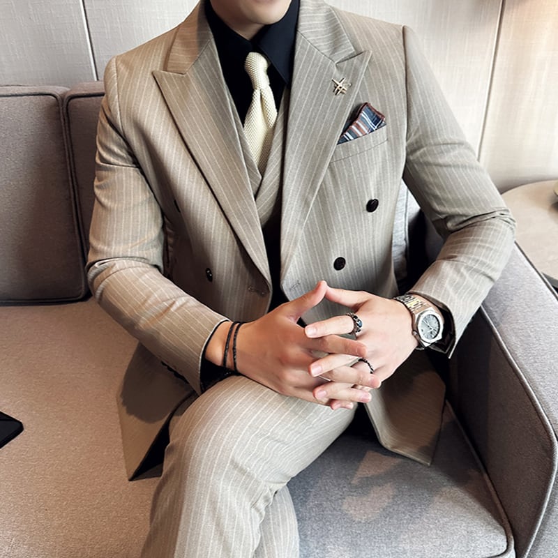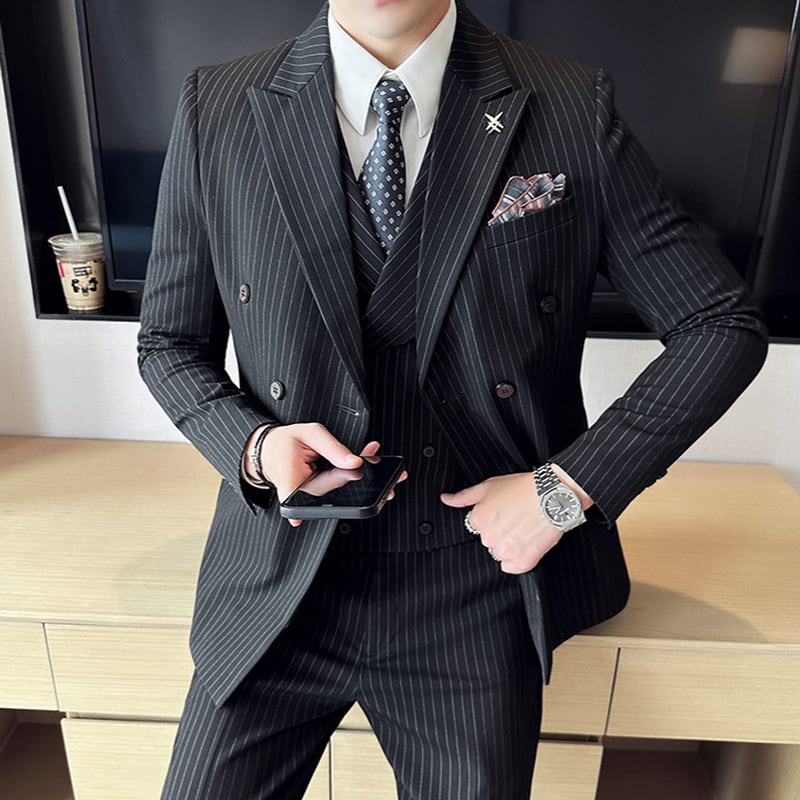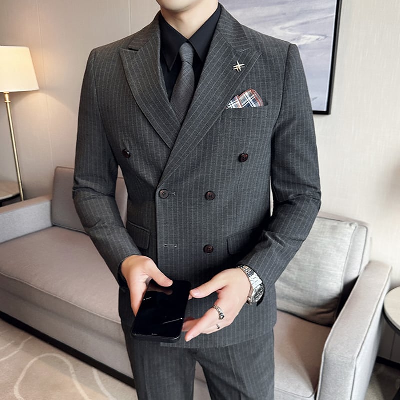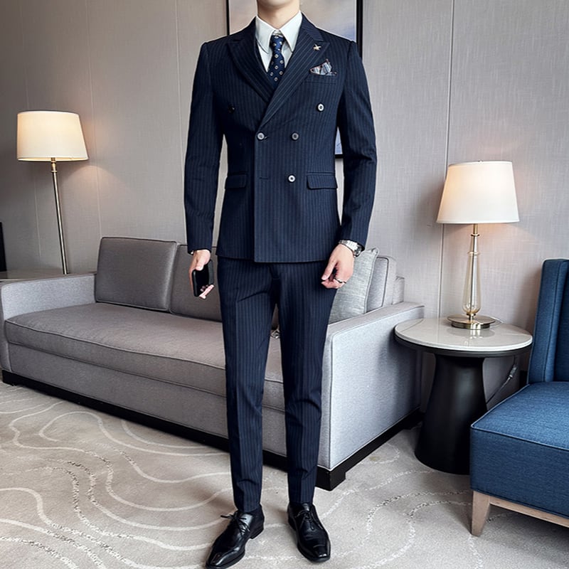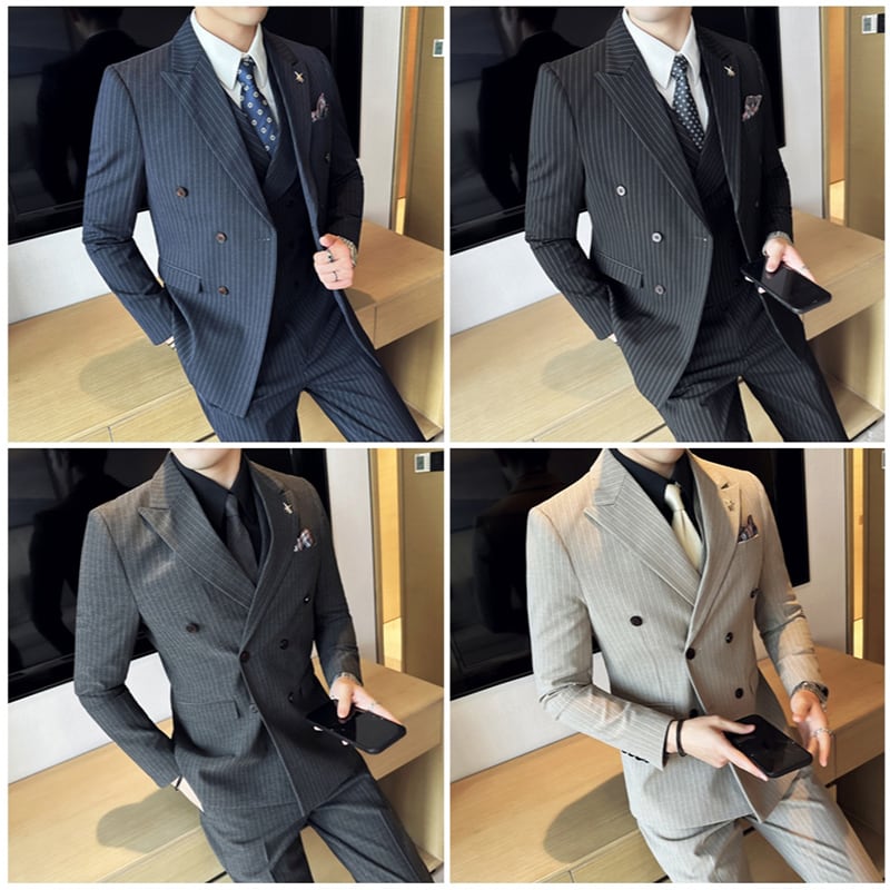 スリーピース エグゼクティブピンストライプ ダブルブレストスーツ 4カラー LB1608