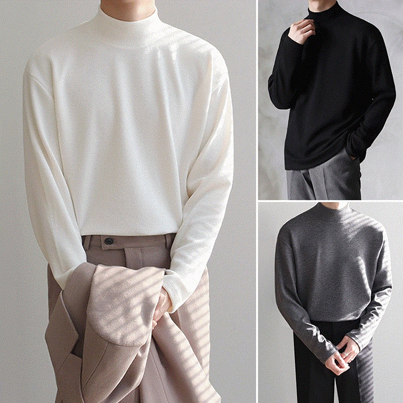 ストレッチコットン モックネックロングスリーブ 3カラー LB1675