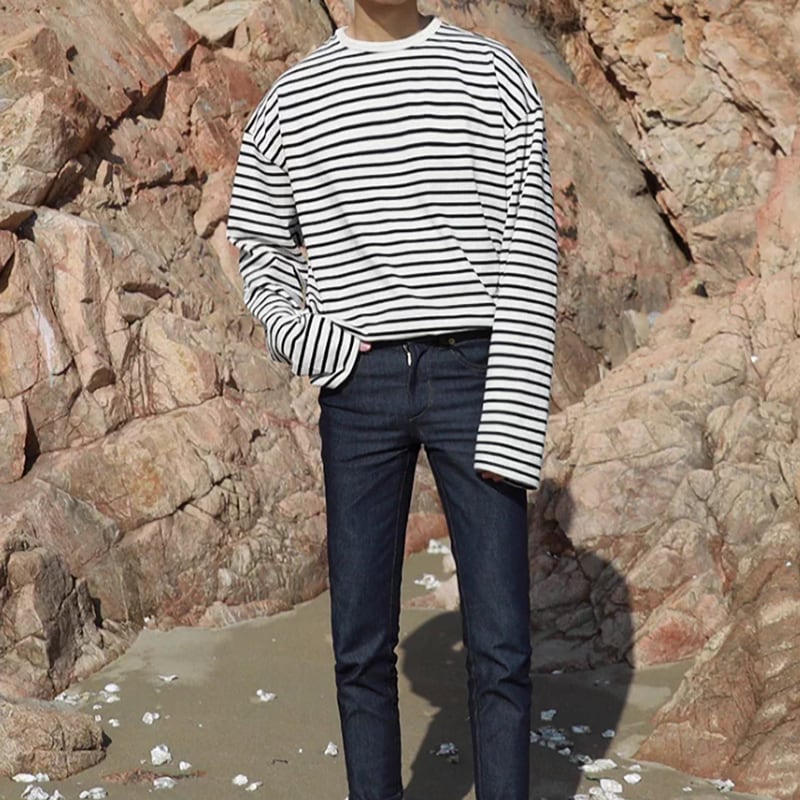 モダンボーダー オーバーサイズ ロングスリーブT 2カラー LB1687