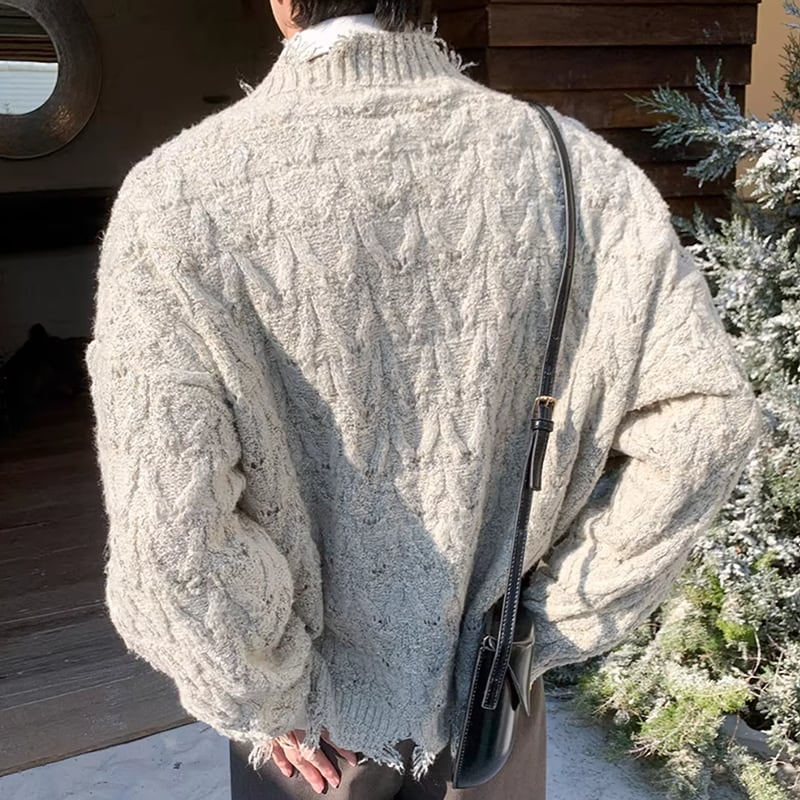 ベアーアクセント ダメージVネック ニットプルオーバー 2カラー LB1688