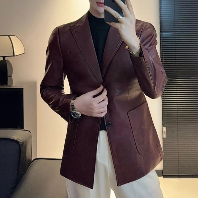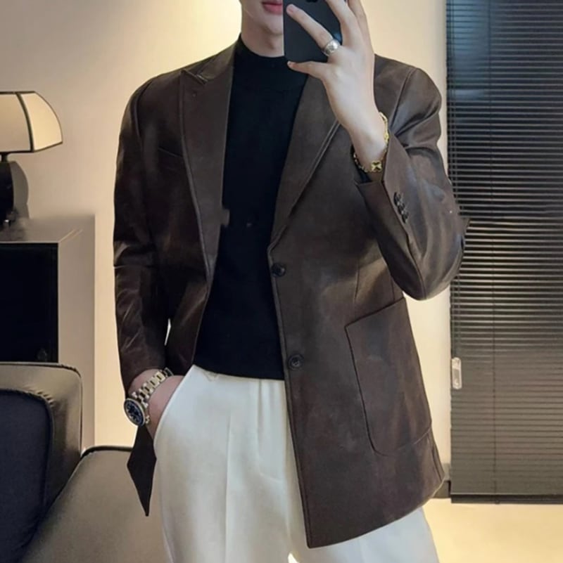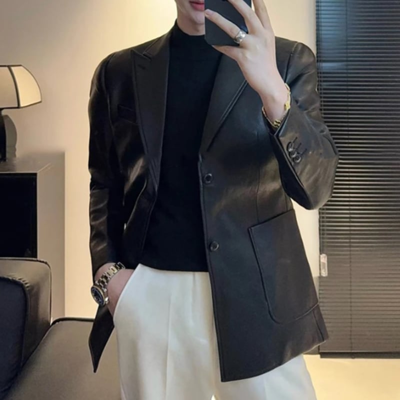 ノーブルフェイクレザーテーラードジャケット 3カラー LB1694
