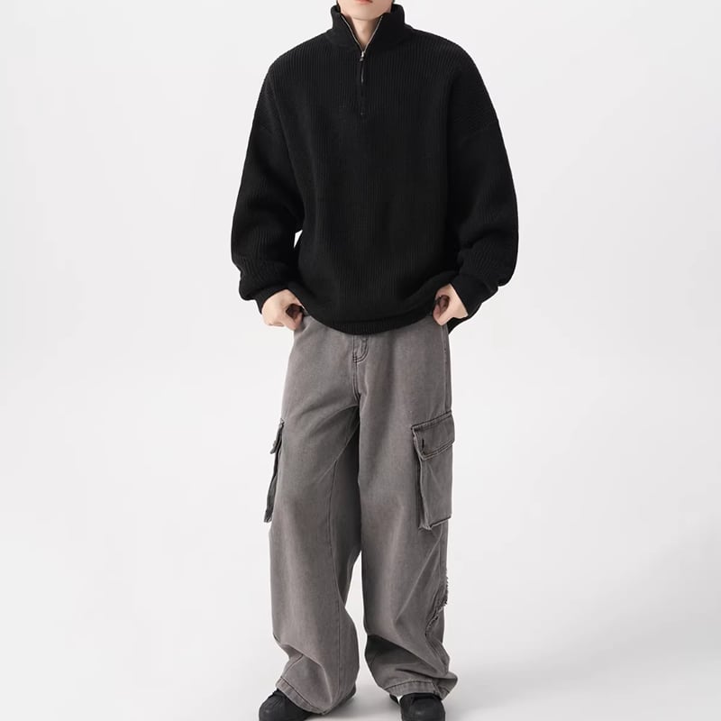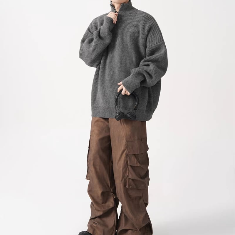 ソフトリブ ハーフジップ ニットプルオーバー 3カラー LB1700