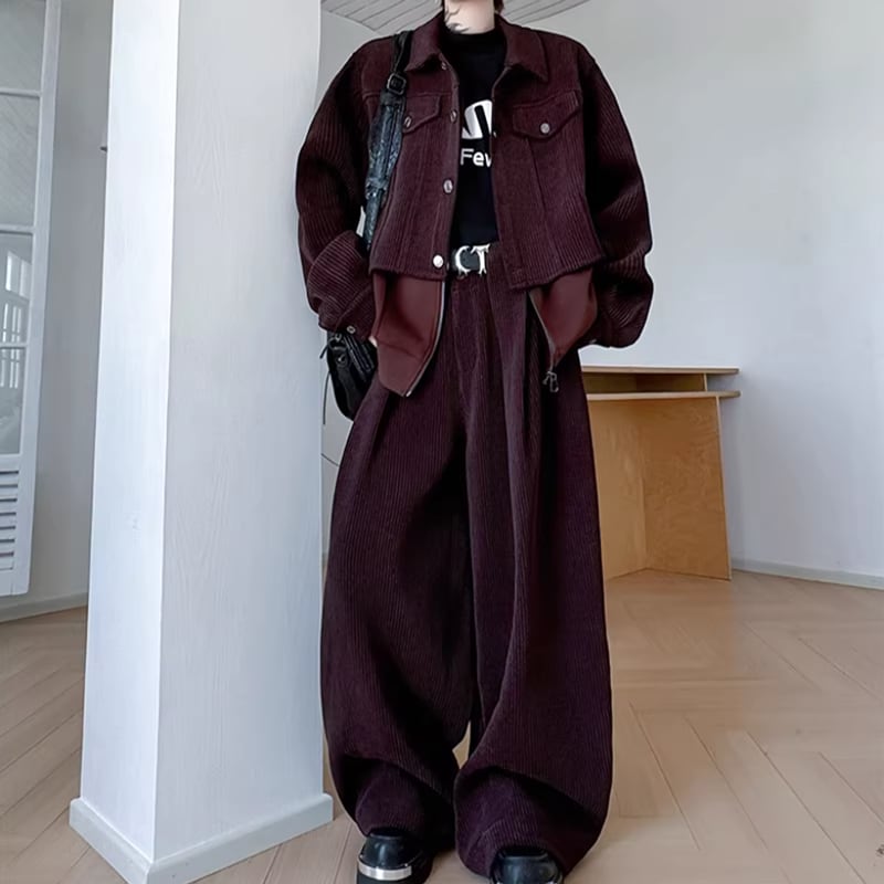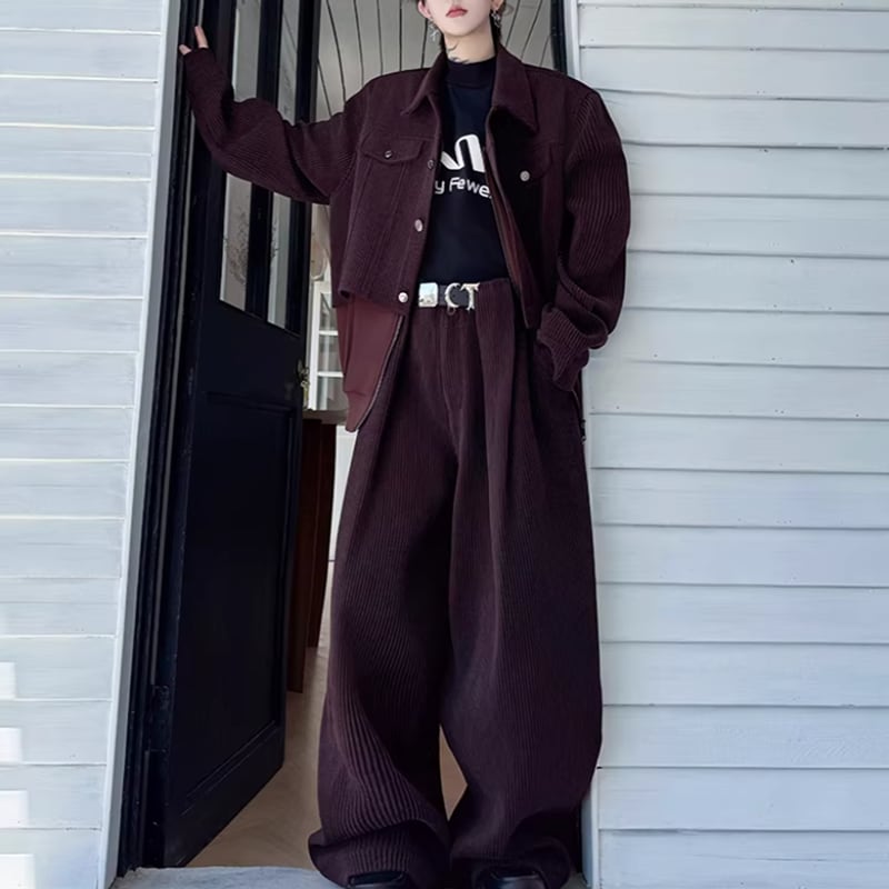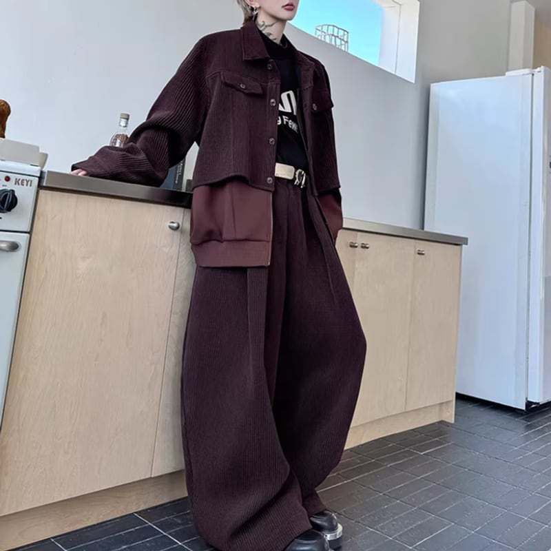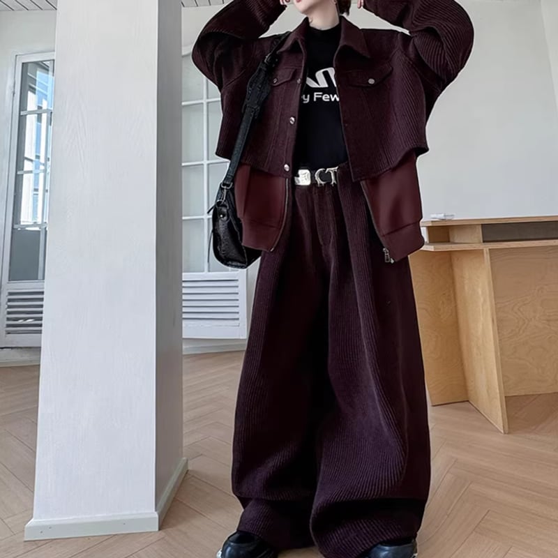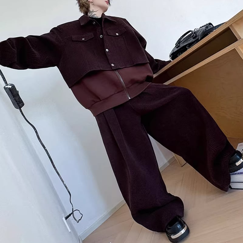 ノーブルコーデュロイ レイヤードセットアップ ワインレッド LB1717