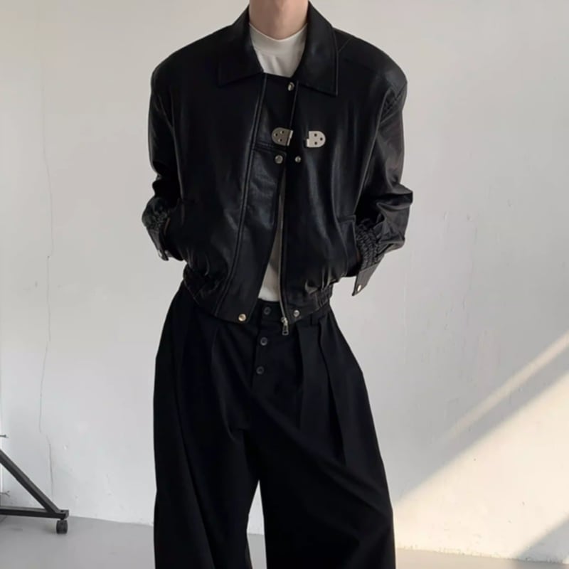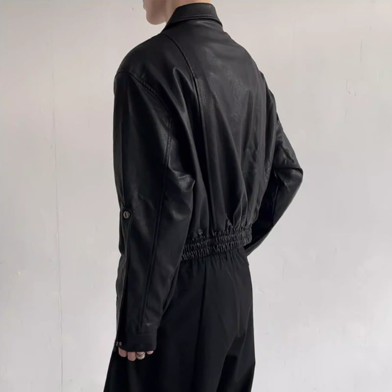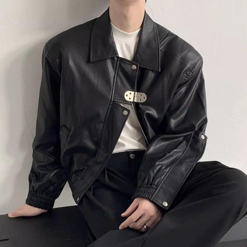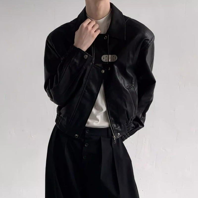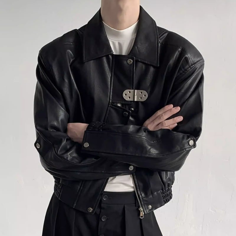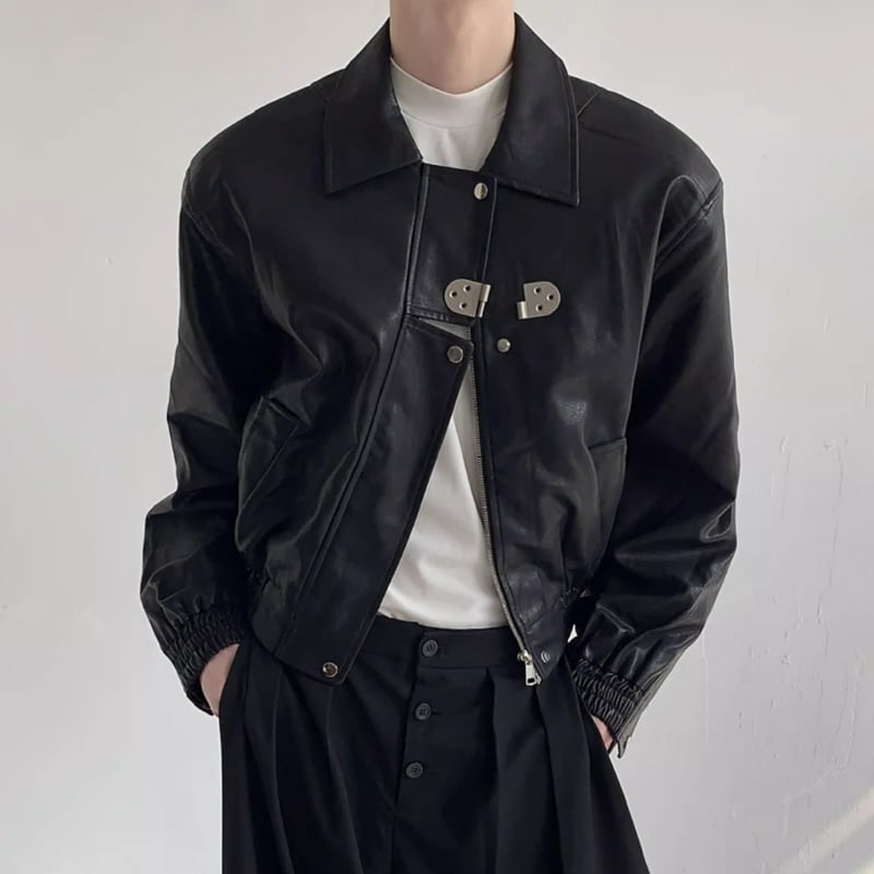 メタルバックル フェイクレザーブルゾン LB1754