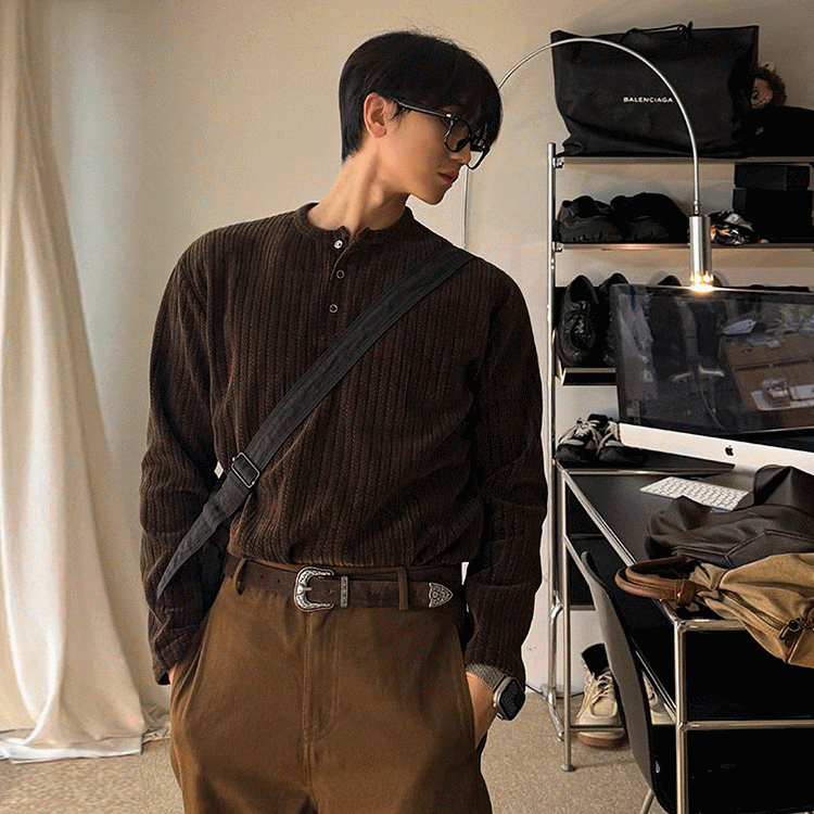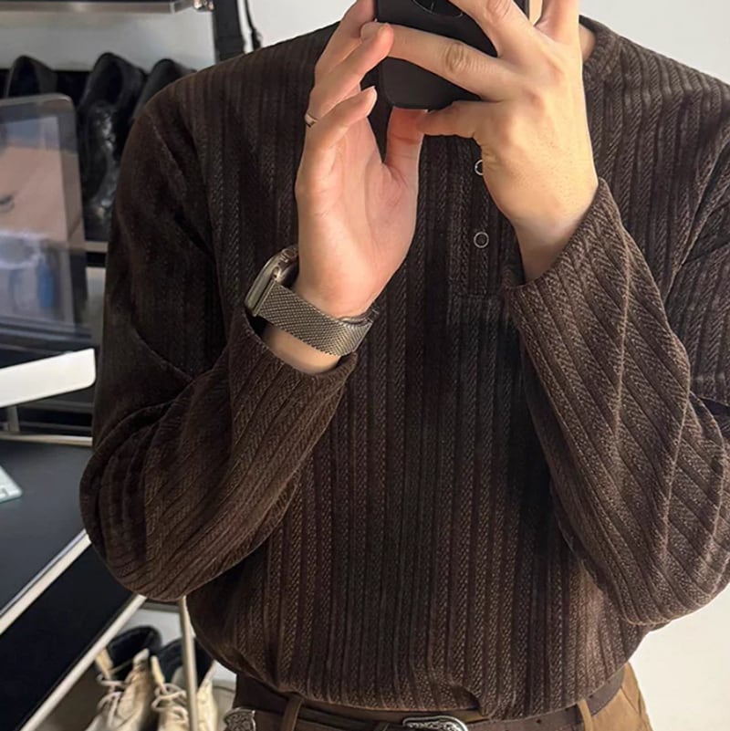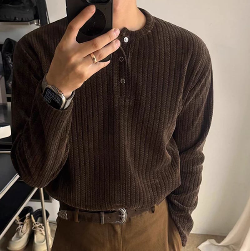 リブニット ヘンリーネックトップス 2カラー LB1768