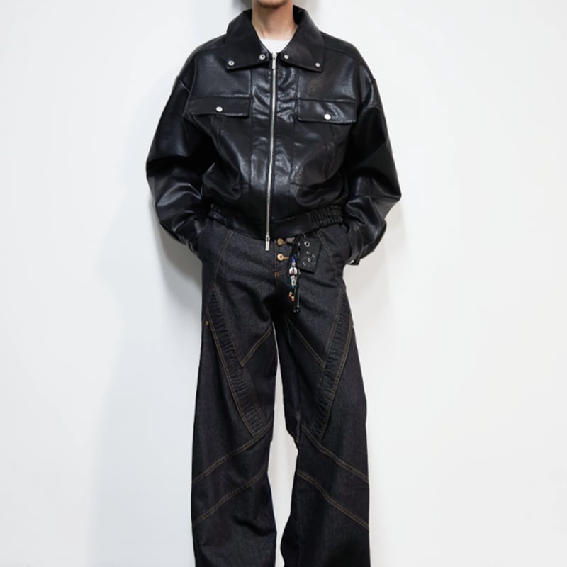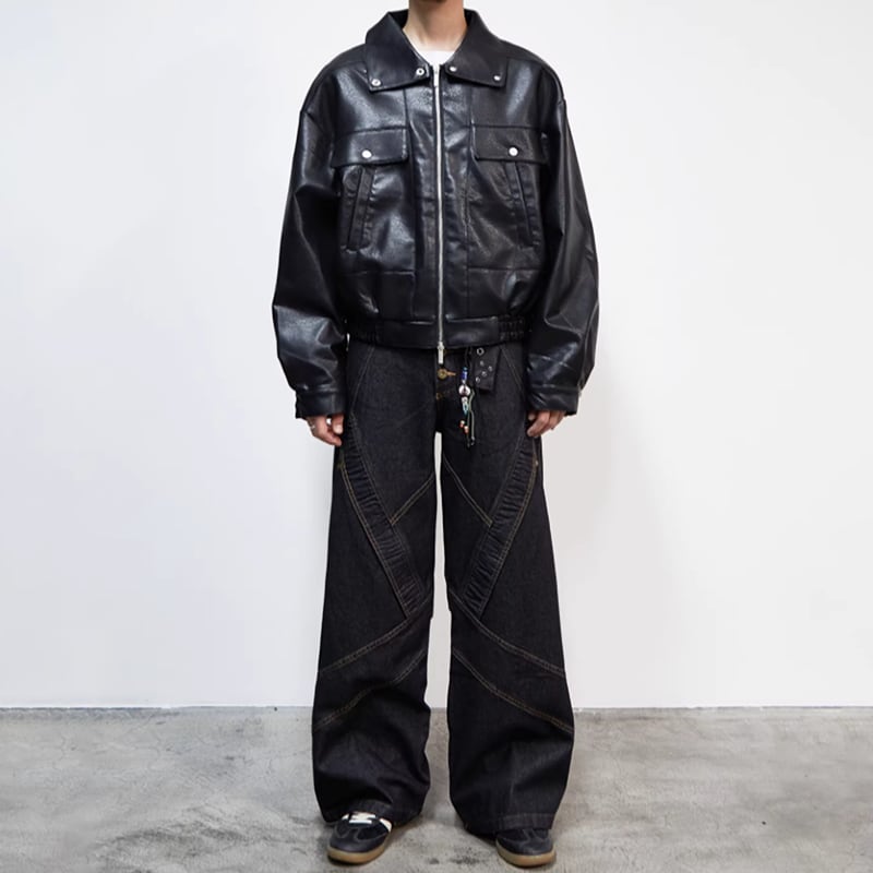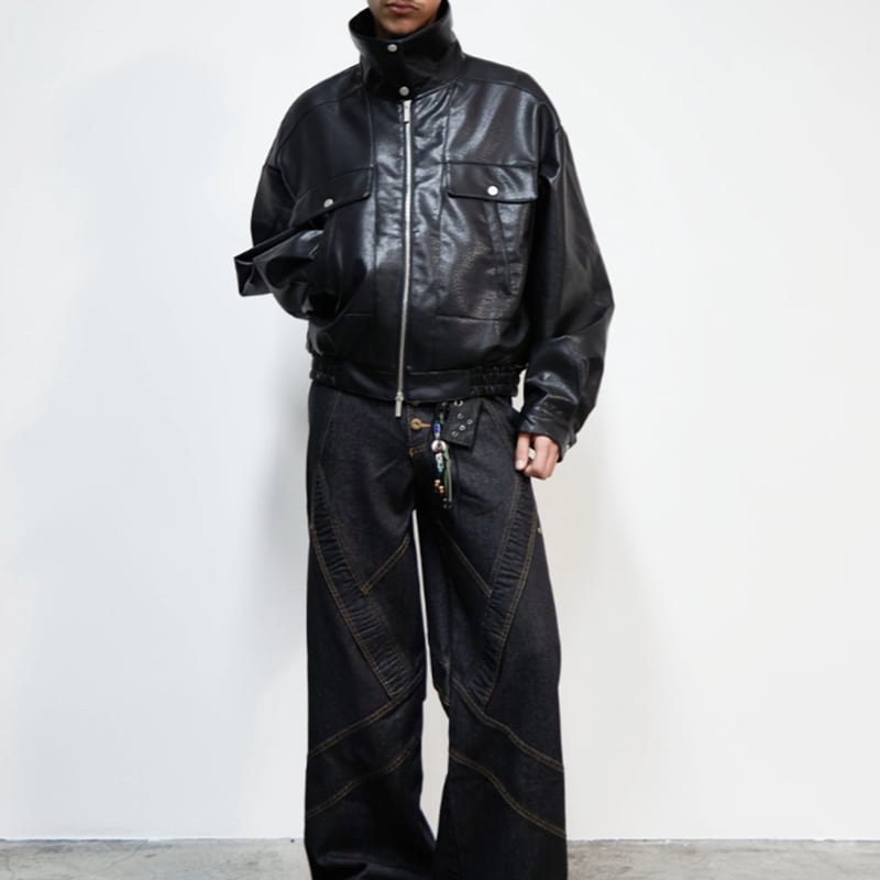 スタンドカラー ヘビーウェイト レザーライクブルゾン LB1773