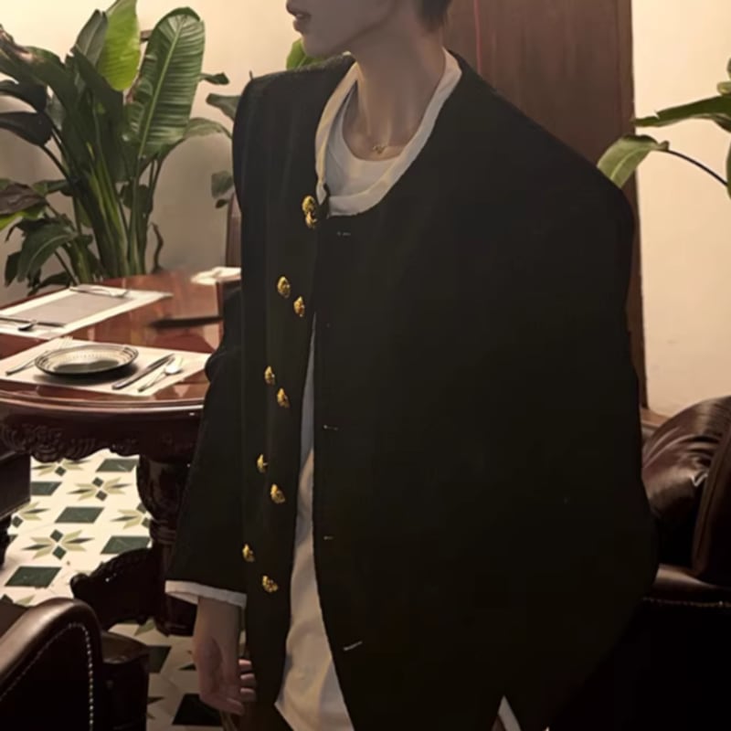 メタルダブルボタン ノーカラージャケット LB1790