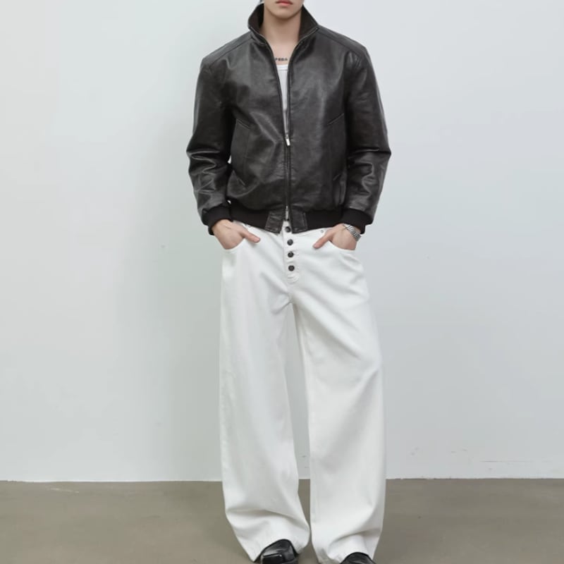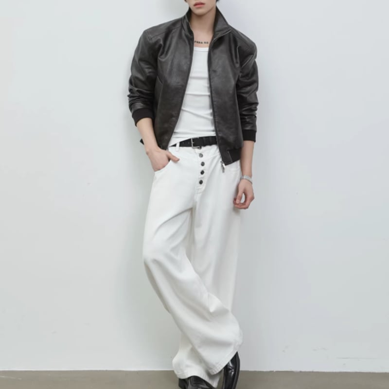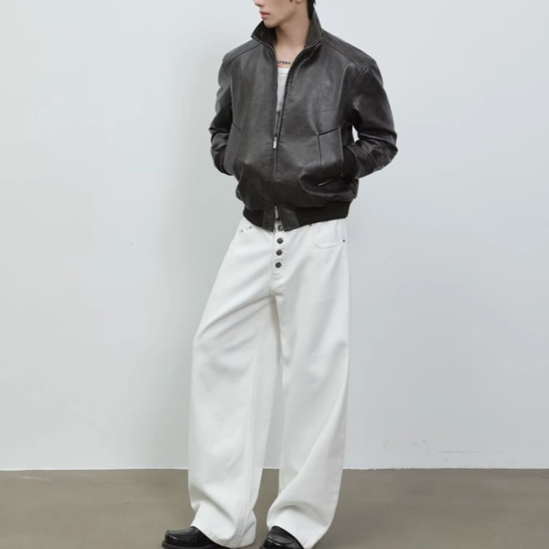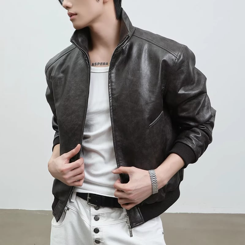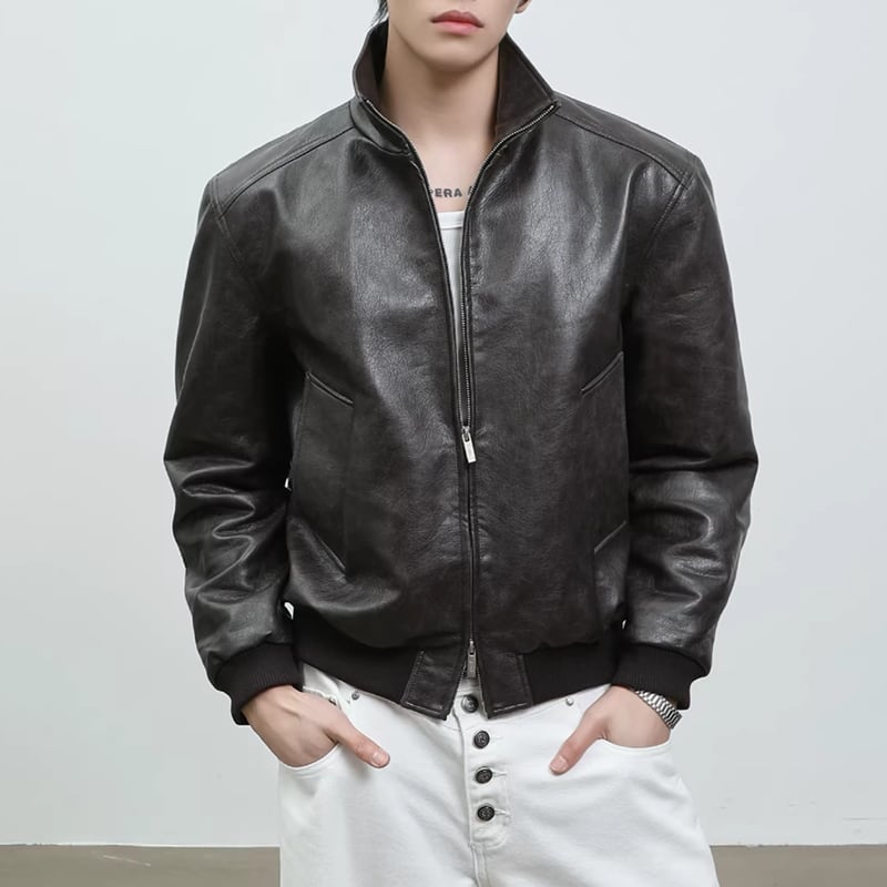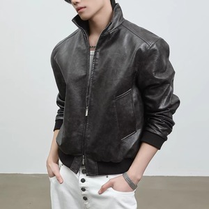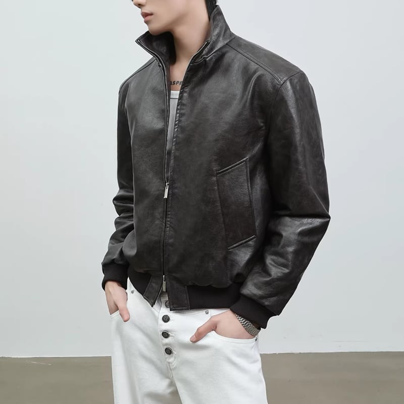 スタンドカラー レザーライクジップブルゾン LB1824