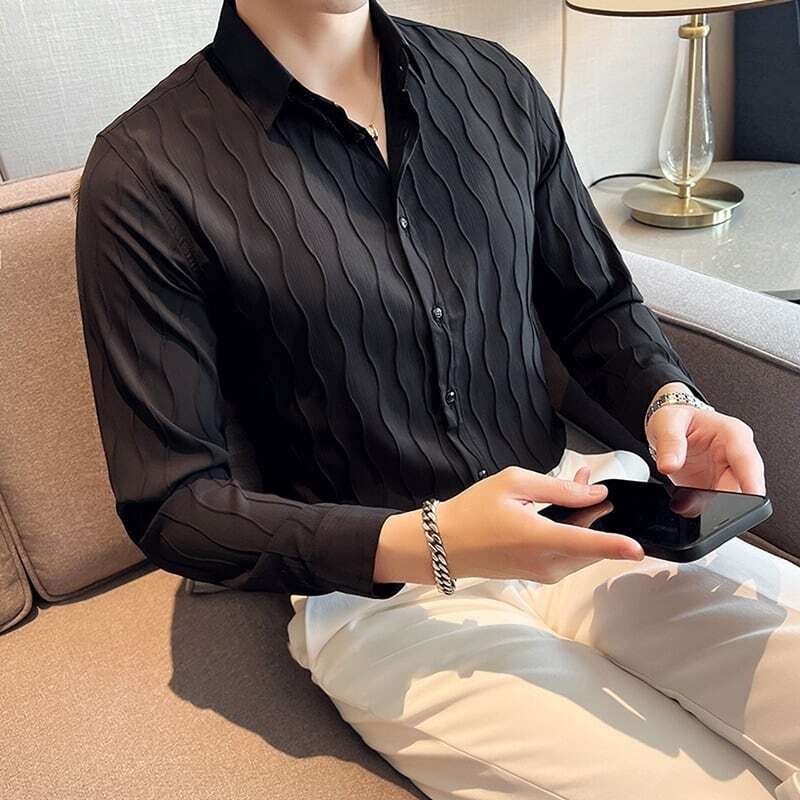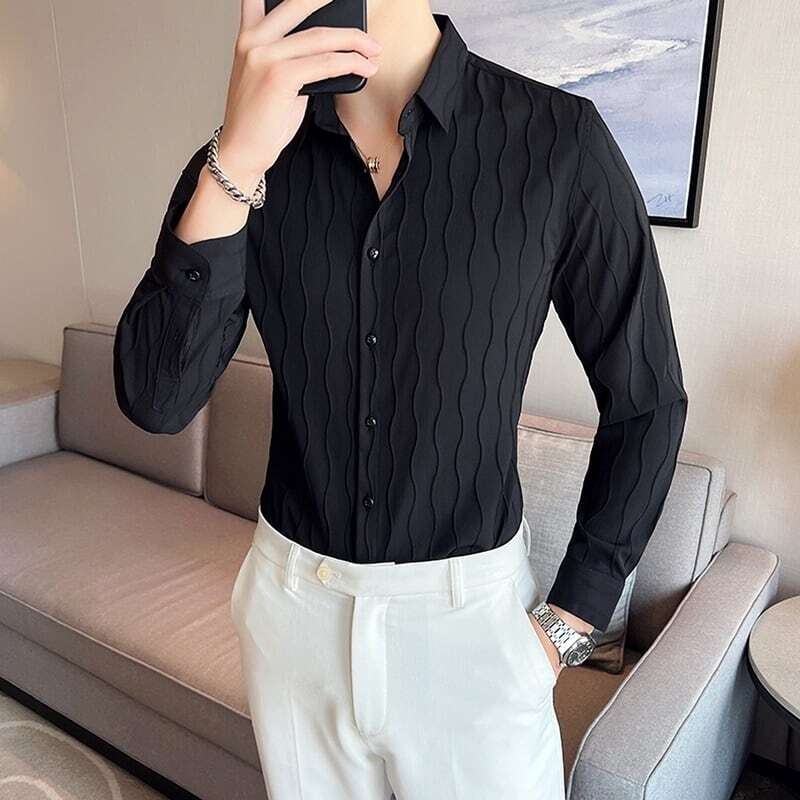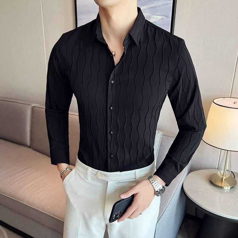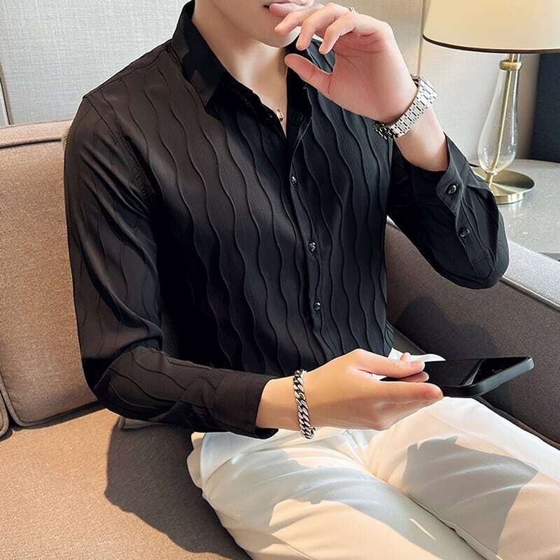 【即納】ウェーブデザインシャツ 2カラー LB0154 ブラック
