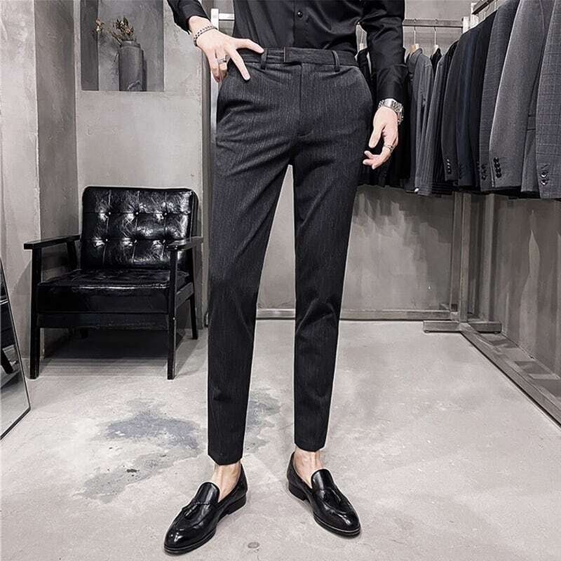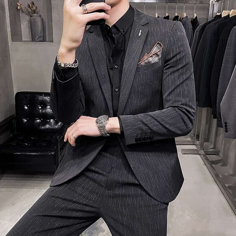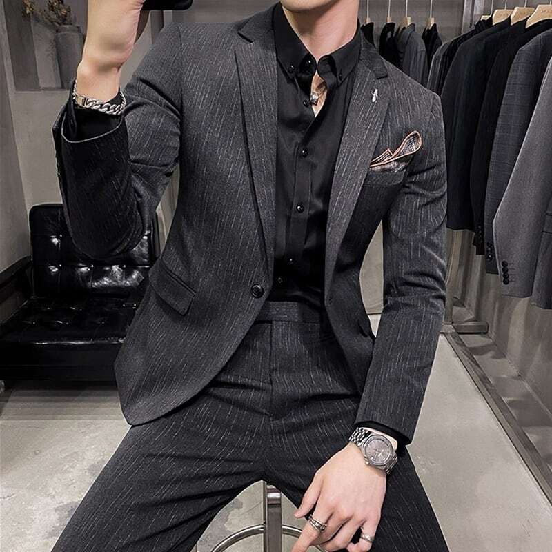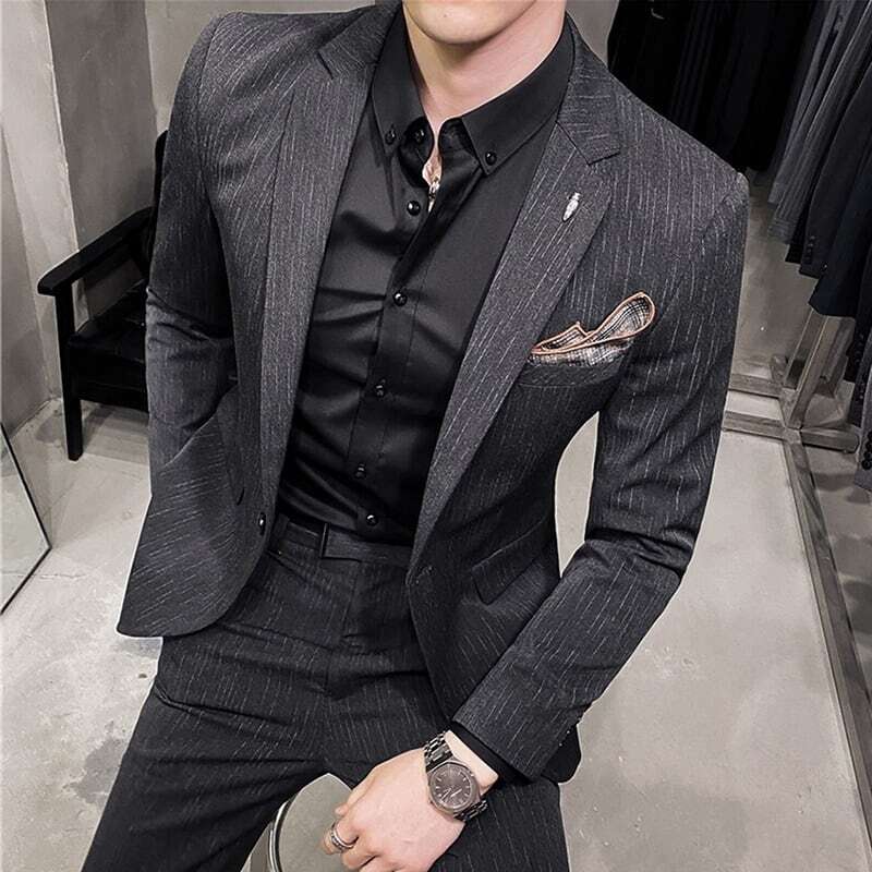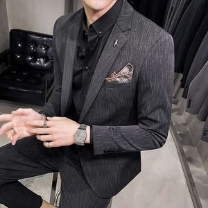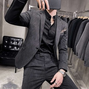 【即納】ツーピース ストライプ スリムフィットスーツ 3カラー LB0007 ダークグレー