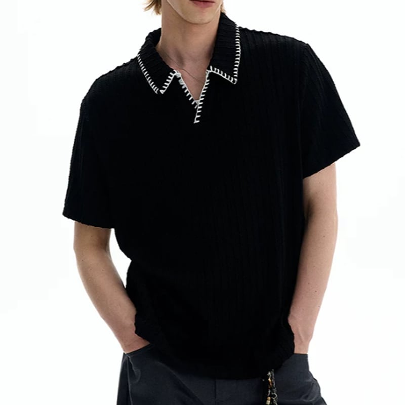 ステッチデザイン リブニットポロ 2カラー LB1876