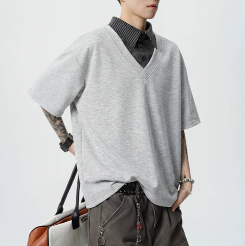 フェイクレイヤード VネックTシャツ 2カラー LB1877