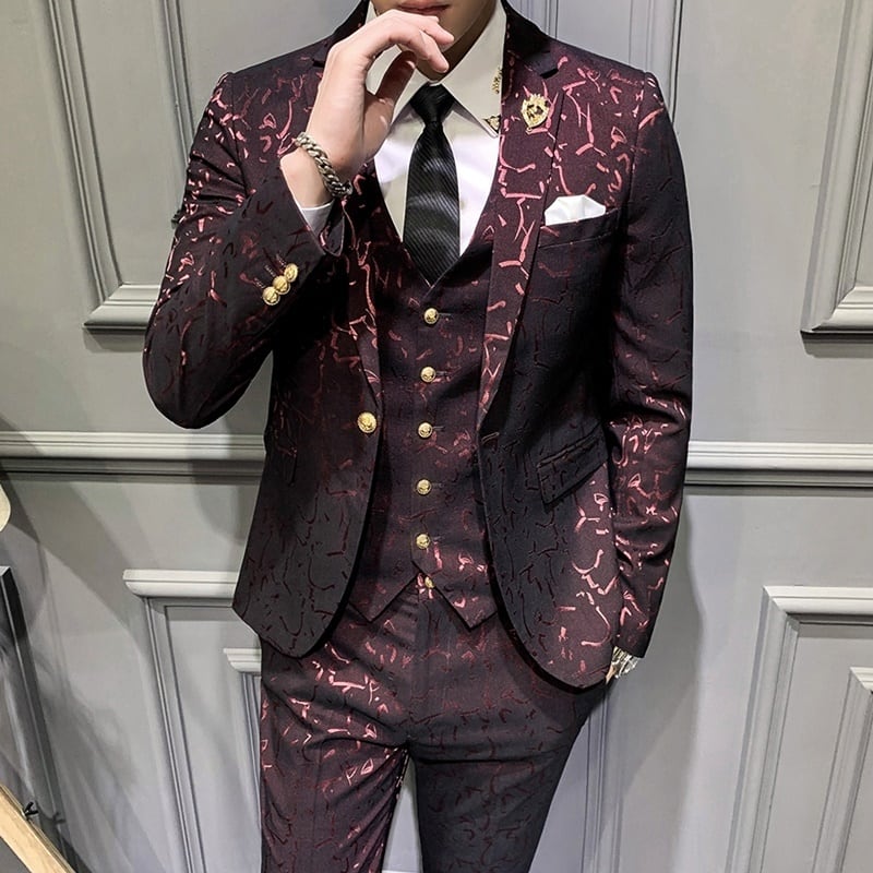 スリーピース シングルブレスト ジャガードスーツ 2カラー LB0135
