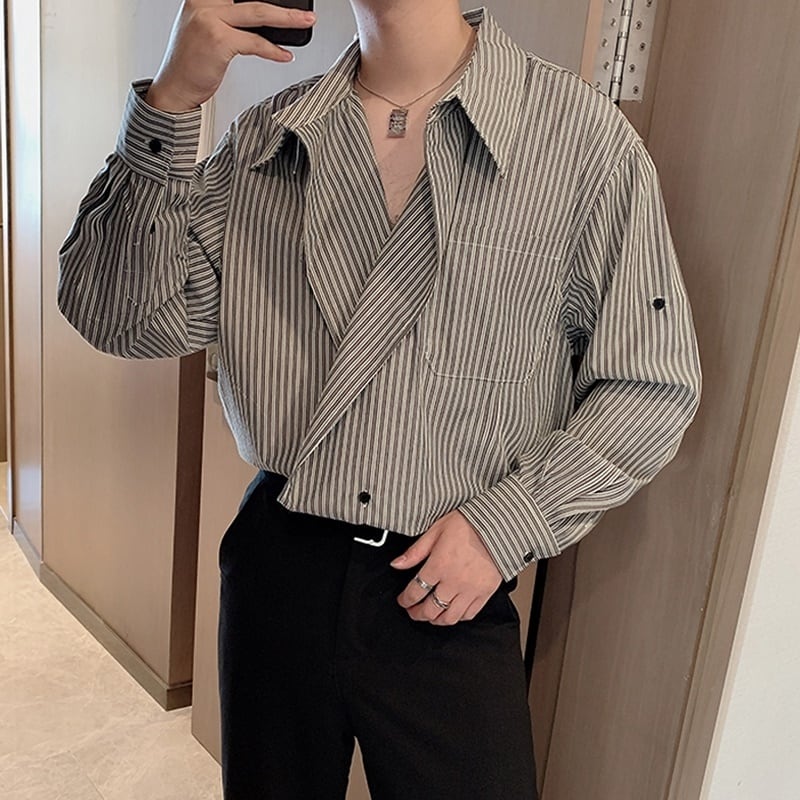 フリルカラー ストライプシャツ LB0491