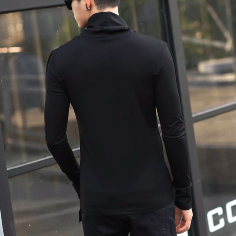ハイネック アシンメトリーデザイン スリムシャツ LB0815