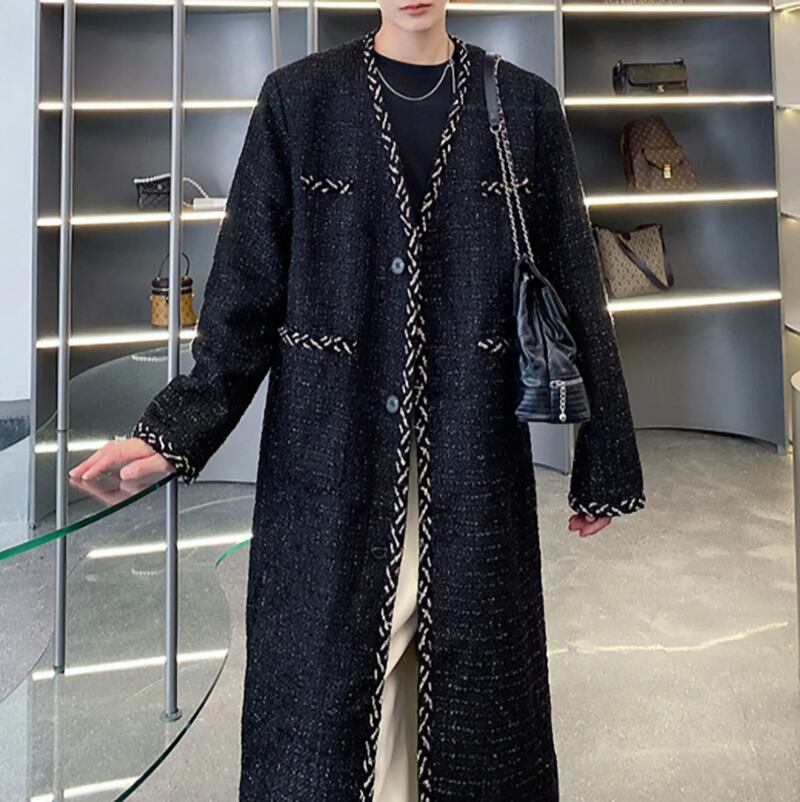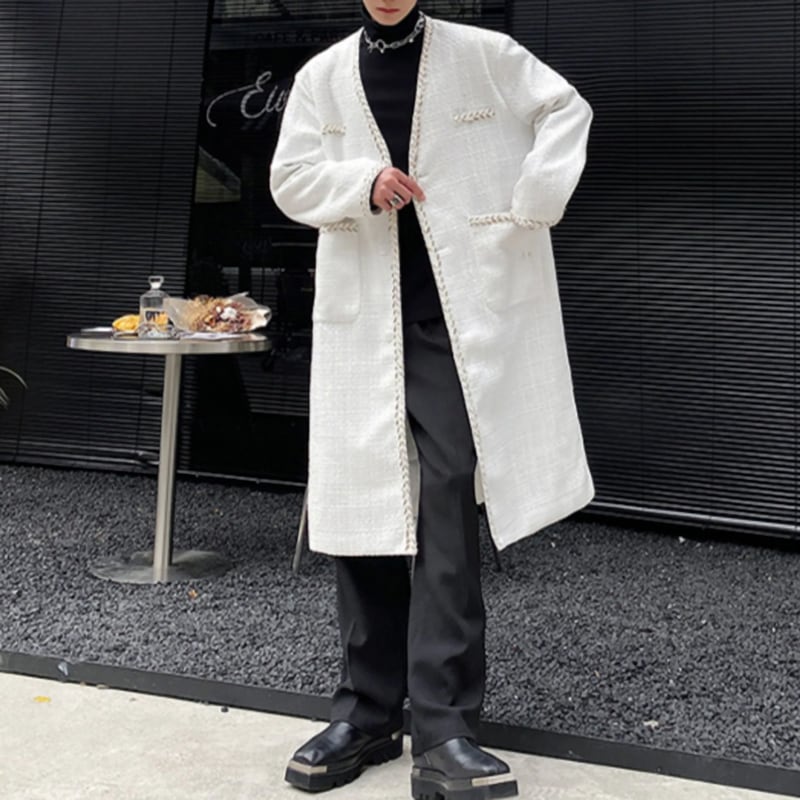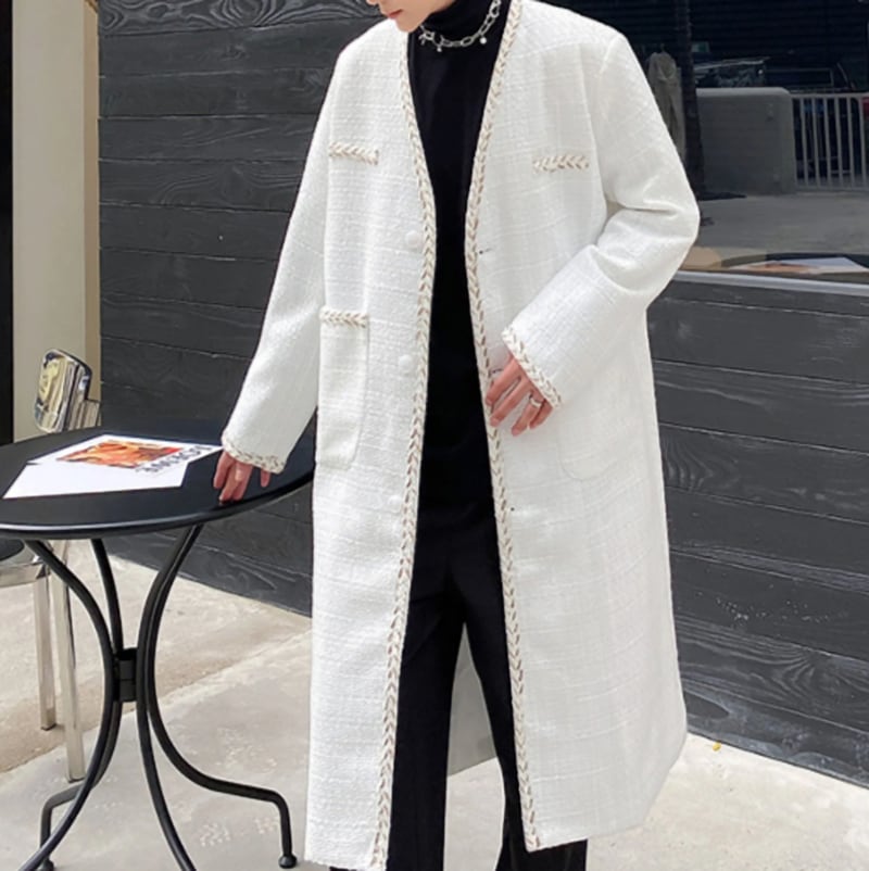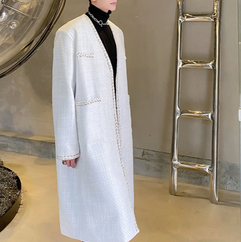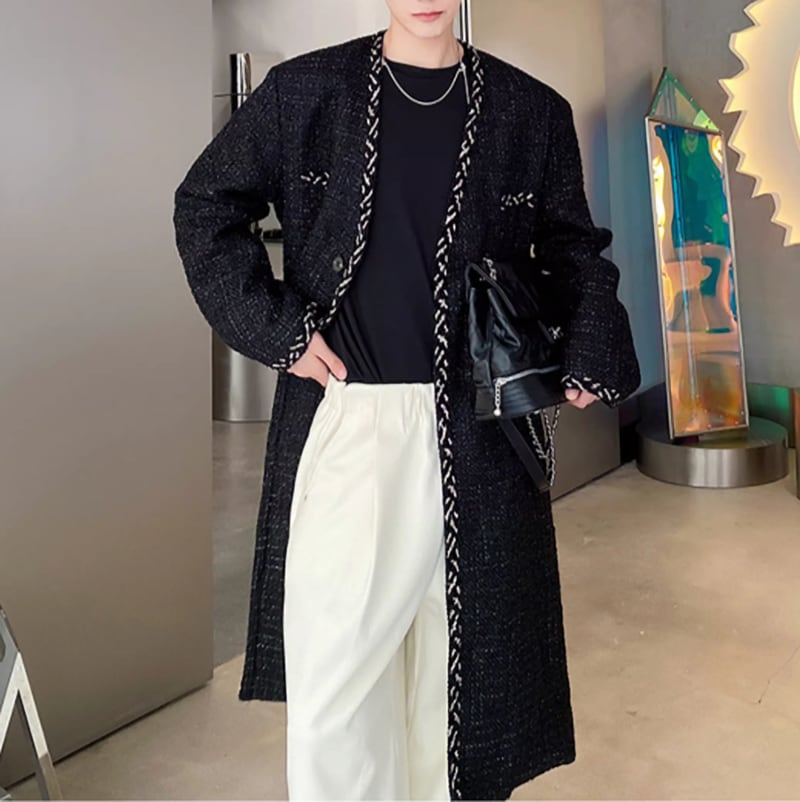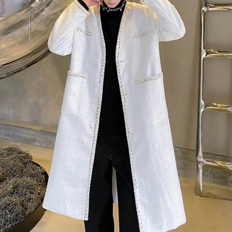 ノーカラー ツイード ロングコート 2カラー LB0951
