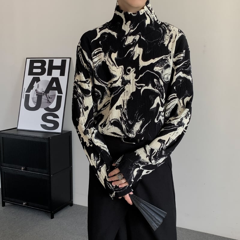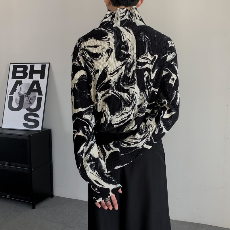 マーブリングデザイン プリーツハイネックシャツ LB1059