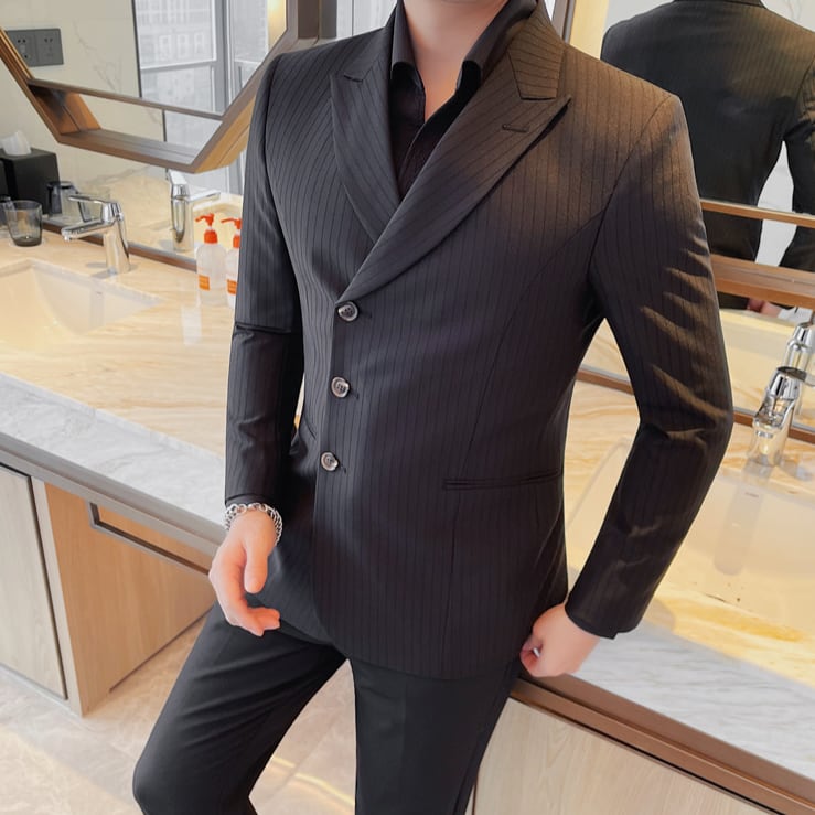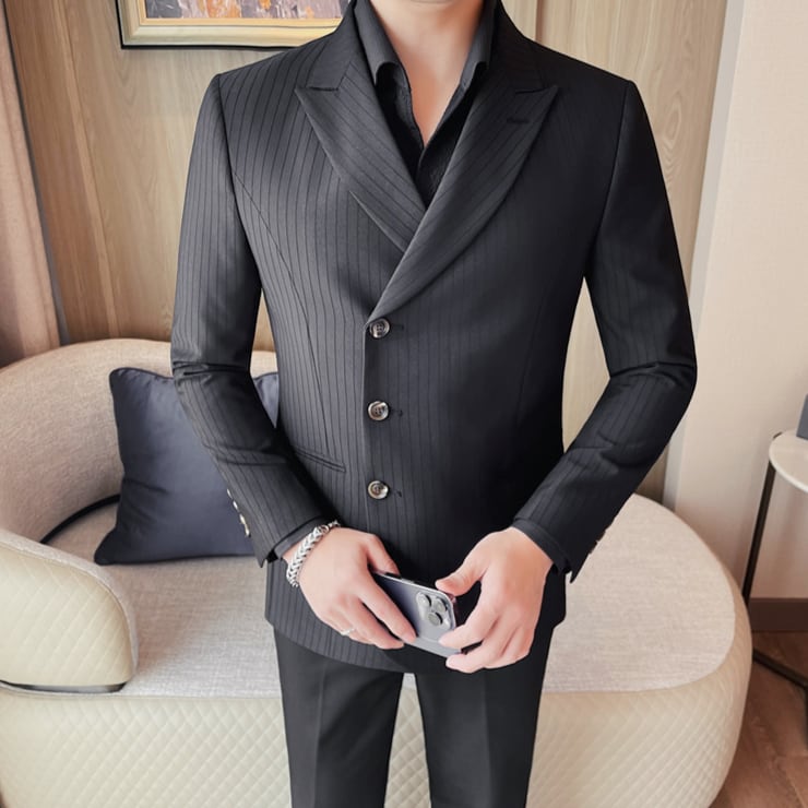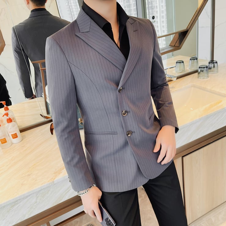 シングルブレスト ストライプ スリムラップジャケット 2カラー LB1138