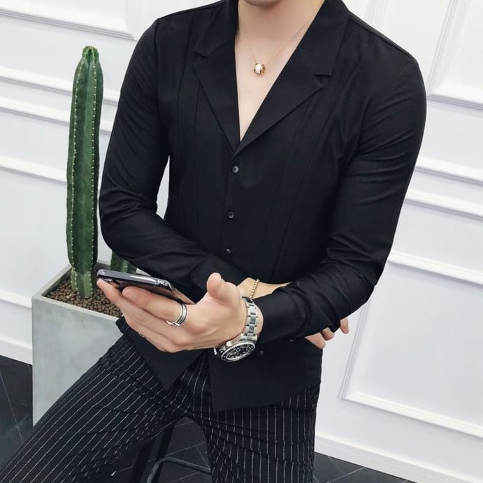 Vネック ラペルスリムシャツ 2カラー LB1184